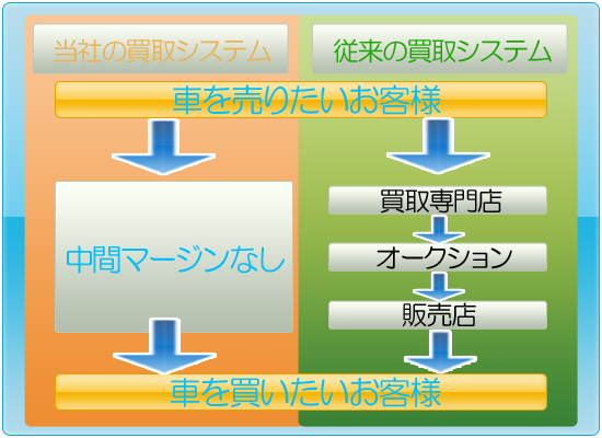 あなたのお車、高額査定、高額買取致します! ・ローン中のお車や、高低年式のお車、多走行のお車 当社の独自による、中間マージンを排除した流通システムで高額査定と高額買取を実現致しました。 もちろん 査定料は無料となっております。